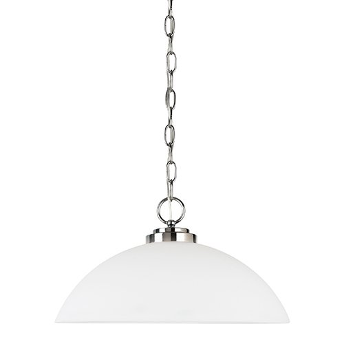 Generation LightingGeneration 65160 Oslo 1-lt 16” Pendant Features Finish: Brushed Nickel, Chrome, Bronze Material: Steel, Etched Glass Voltage: 120V Easily converts...