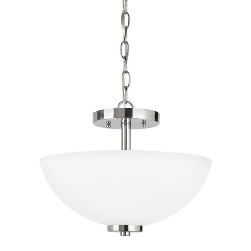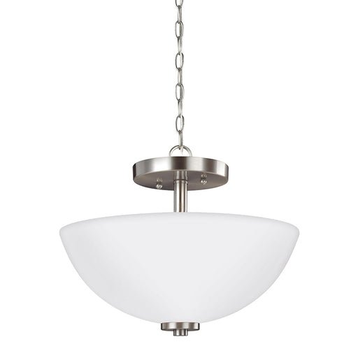 Generation LightingGeneration 77160 Oslo 2-lt 14” Convertible Pendant Features Finish: Brushed Nickel, Chrome Material: Steel, Etched Glass Voltage: 120V Semi-Flush...