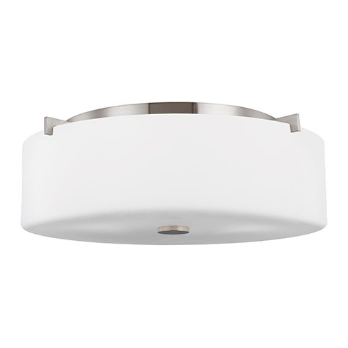 Generation LightingGeneration FM313EN3 Sunset Drive 2-lt 14” LED Flush Mount Features Finish/Glass: Brushed Steel/White Opal Etched Glass, Chrome/White Opal Etched G...