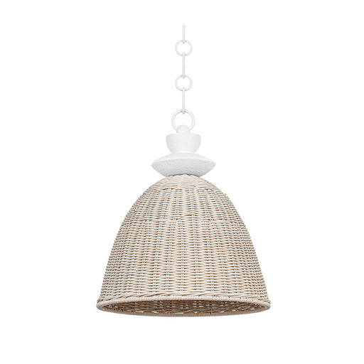 Troy LightingA white-washed wicker dome shade is suspended from a jewelry-like Gesso White chain and topped with stacked stone accents giving Kahn a clean and f...