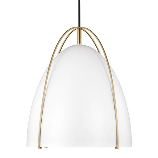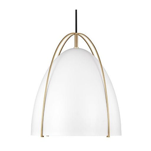 Visual Comfort StudioVisual Comfort 6551801EN3 Norman 1-lt 13” LED Pendant with Matte White Shade Features: Finish: Satin Brass, Chrome Material: Steel Wattage: 9.3W V...
