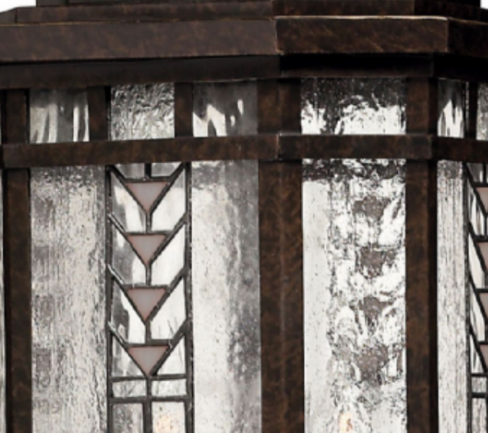 HinkleyTahoe makes a classic Arts & Crafts design statement in cast aluminum construction with panels of clear seedy waterglass and copper foil art gl...