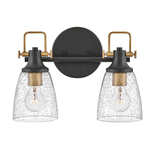 HinkleyPoppy features clear seedy glass spheres that bubble out of the refined Black with Heritage Brass frame to create a simple, yet sophisticated silho...