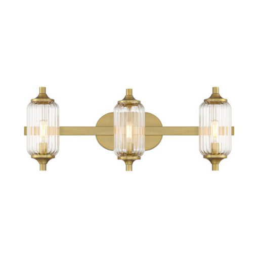 Savoy HouseThe Savoy House Holton 3-light bath light showcases an inventive and geometric style with tall, rounded shades of clear ribbed glass and a slim. Fe...