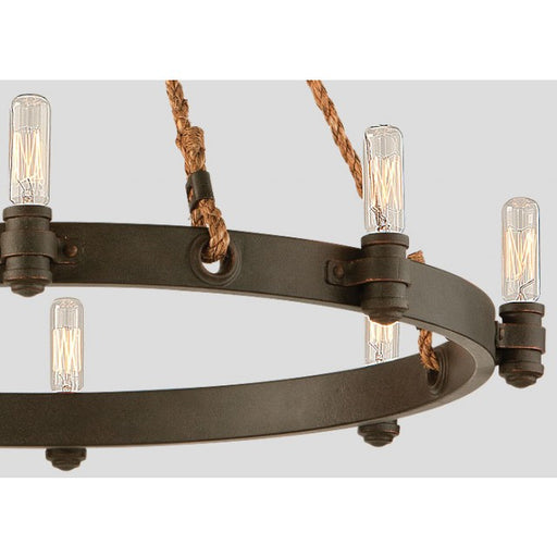 Troy LightingPike Place 16-lt Chandelier Features Finish: Shipyard Bronze Materials: Hand-worked wrought iron with natural manila rope Chain Length: 72" Canopy...