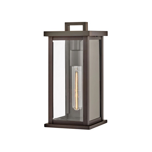 HinkleyEdgewater's classic design features durable cast aluminum and brass construction in a rich Black or Oil Rubbed Bronze finish with clear seedy glass...