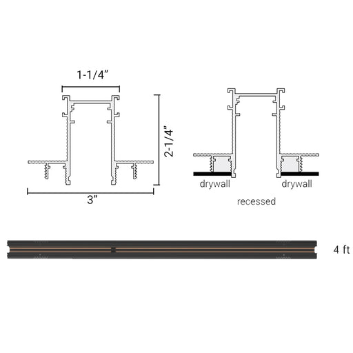 EliteGroove 48V DC track system, Trimless Recessed Mount 4 Inch Track Features Mounting: Trimless Recessed Mount Finish: Black, White Dimensions Leng...
