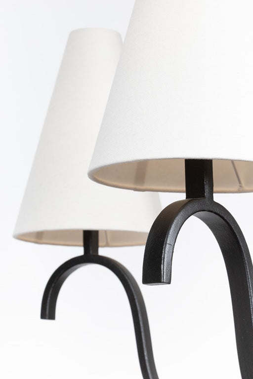 Troy LightingTraditional off-white linen shades contrast against soft, swooping Forged Iron metalwork to create the perfect transitional piece. Available as a o...