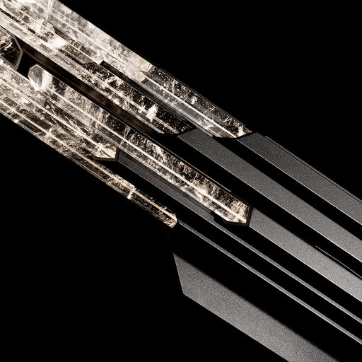 Schonbek BeyondLayered rods ornamented with metallic geometric accents epitomize the Art Deco influence of this luminaire. Optic Haze QuartzTM elements lit by LED...