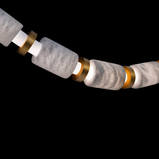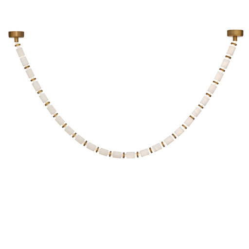 Modern FormsTimelessly tasteful. Cylinders of natural Spanish Alabaster and gleaming metallic collars ornament a silica strand, creating a gemlike presence. Fe...