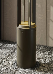 The Turbo outdoor LED bollard features a clean, cylindrical silhouette highlighted with decorative fins evenly spaced around the circumference which create beautiful geometric shadows when illuminated by the powerful LED light source shining down from the crown.