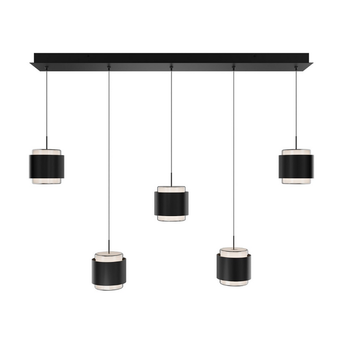 A lustrous metallic band encircles an inner white diffuser, creating an elegant play of shadow and glowing illumination. Multiple Banded pendants are installed on a round canopy to make a modern statement in any space.
