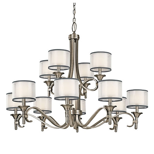 This 12 light, 2 tier chandelier from the Lacey Collection offers a beautiful contrast, melding the charm of Olde World style with clean modern-day materials.
