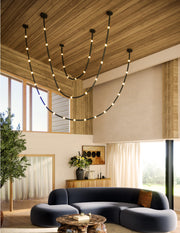 The Corda collection by Branch Creative redefines modern lighting with its adjustable fabric rope adorned with illuminated petite opal glass globes. Perfect for layering in various sizes, it transforms into an eye-catching chandelier suited to any space. Offered with standard junction box covers or remote driver options, Corda delivers versatility and a strikingly unique aesthetic.