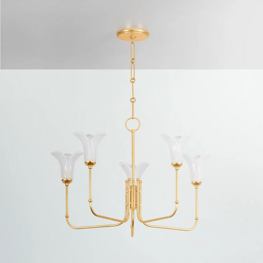Hudson ValleyIn tribute to the beauty of nature, white Bianca glass shades resembling flowers bloom upwards, supported by slender Vintage Gold Leaf arms. *Due t...