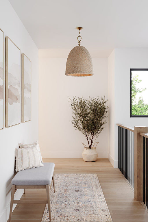 Hudson ValleyAs the queen of the coast, this natural rattan pendant elevates a handwoven basket aesthetic to a statement piece. Suspended by a thick Gold Leaf c...