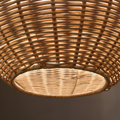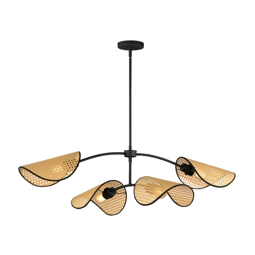 Maxim LightingNatural cane woven wicker shades curve over exposed light bulbs like the brim of a bonnet on a minimalistic mobile chandelier. The composition of s...