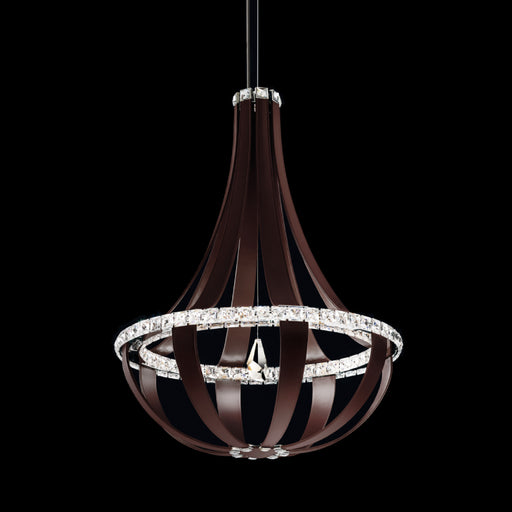 SchonbekNeoclassical in nature, this draped, leather chandelierâs structure softens the room. Its smooth sheen is punctuated by an iconic Swarovski crystal...