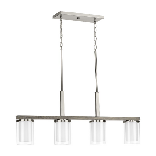 Progress LightingThe nature-inspired, modern design of the Mast four-light island fuses faux wood accents and a duo of clear and etched glass shades to create an or...
