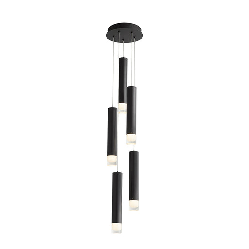 Oxygen LightingEach cylinder on the black Alarum 5 light pendant is capped with a CCT 3000k/3500k/4000k LED array diffused by a K9 crystal. A damp listing and col...