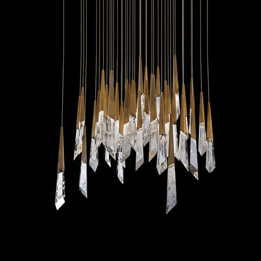 DWELEDPrecisely lined. V-groove flared glass radiates a prismatic glow. Staggered elements create a sense of motion, heightening the drama of this statem...
