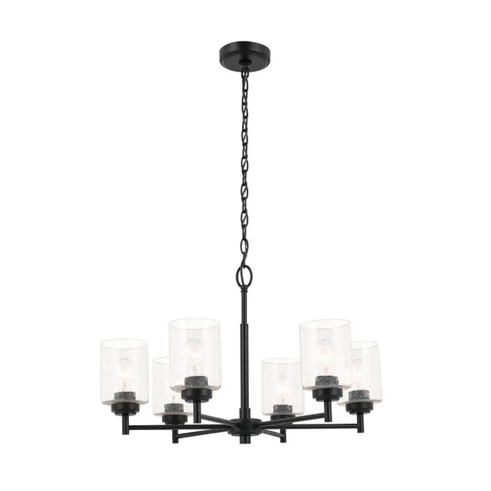 Update your space with the clean, classic, early-electric look of the Winslow 6-light chandelier. A focal piece that's sure to be all the rage, this Winslow fixture easily jazzes up luxe industrial lifestyles. Winslow's clear seeded glass filters light beautifully and is removeable for ease of cleaning or replacement.