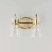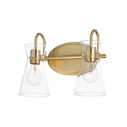 Suspended by three pin connections, the sharp silhouette of Ava's angular glass provides a designer look to enhance your bathroom design. Using Clear glass and a variety of complementary metal finishes the sconces are available in Black, Polished Chrome, or Natural Aged Brass allowing it to pair well with most interior color palettes.