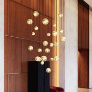 Grapes are luminous LED spheres arrayed in precise or random patterns, in clusters, or as single points of light. Seen from the middle or above, the crystal appears clear with a subtle luminance.