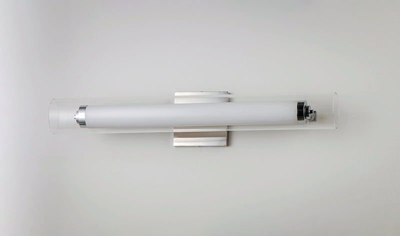 Clear glass outer tube encases a white acrylic inner tube capped with polished Chrome caps creates this clean contemporary design. Powered by high output LED which is nicely diffused make this collection suitable for both residential and commercial applications