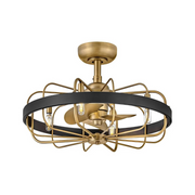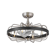 Eli is an instant favorite with unique design elements and modern edge. Available in Brushed Nickel with Matte Black, Heritage Brass with Matte Black, or Matte Black with Driftwood, this Fandelier adds an industrial-hip character to any indoor space.
