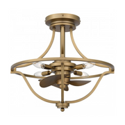 The Harvel ceiling fan light offers a stylish and functional way to light your home while keeping it cool. The simple open cage design is finished in weathered brass, giving Harvel a hint of shine. With a reversible three-speed motor and remote control, this fan light is a perfect fit in a variety of smaller interior spaces.