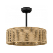 Form meets function in Islander. As part of the Quoizel Naturals series, the ceiling fan light exemplifies modern bohemian style with a hemp rope shade. A matte black finish completes the look, adding contrast to the natural shade. With a reversible three-speed motor and remote control, Islander is the perfect complement to any small interior space.