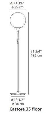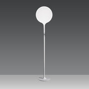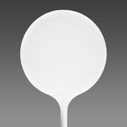 The spherical diffuser design is enhanced by a removable-fitting and tapering luminous stem, that makes the transition from the strong diffuser light to the blind lamp structure area gentle. Base in zamac, stem in thermoplastic resin, blown glass diffuser.