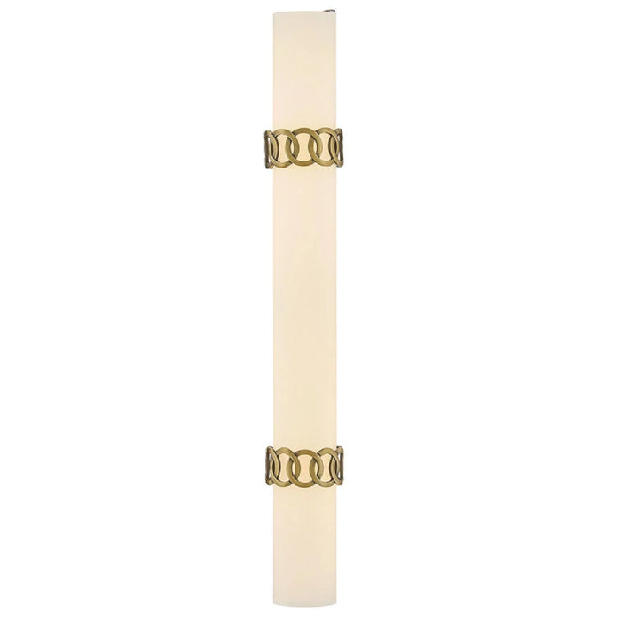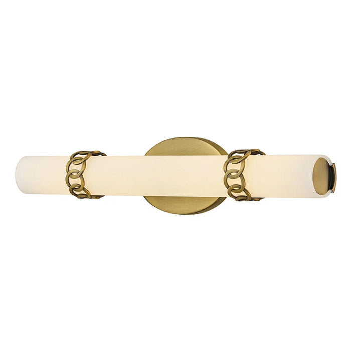 Reminiscent of the fanciful detailing found in fine jeweled bracelets, Eliza’s decorative chain cuffs accentuate its tasteful etched opal glass. Fully dimmable integrated LEDs evenly cast bright yet comfortable illumination to fill your entire bathroom or living space.