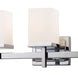 Square glass shades ride upon a rectangular bar to create geometry at its best. Available in Polished Chrome with Satin White glass and Satin Nickel and white Linen glass.