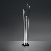 Floor light fixture with diffused emission, with monochromatic LED light sources.