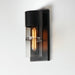 Segmented glass cylinders in a grey Smoke Gradient filter nostalgic tubular LED lamps. The Matte Black frame adds a dark contrast providing ambient light as a guide to your exterior.