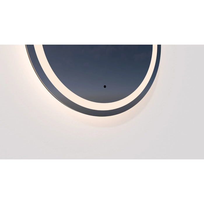 - Frameless Round Mirror Featuring Wide, Direct Light Diffuser
