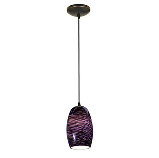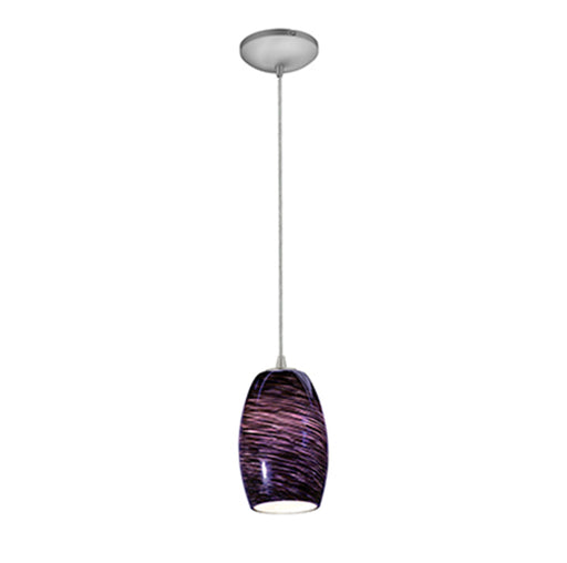 Access LightingSydney 1-lt Pendant Features: Finish: Brushed Steel, Oil Rubbed Bronze Material: Metal, Glass Glass Color: Purple Swirl Color Temperature: 2700K N...