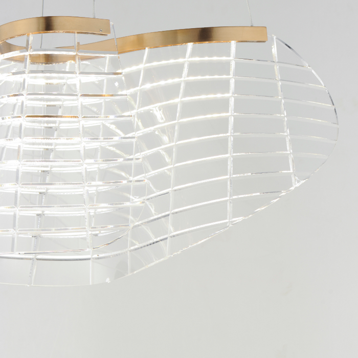 Inspired by patterned fabrics of the Scottish Highlands, the Tartan collection features a waving grid-like design etched deep into the transparent acrylic body. Hand-formed into a curling structure, the material gives the impression of billowing in the breeze.