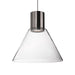 Refined single LED pendant with heavy gauge steel and clear trapezium shaped glass.