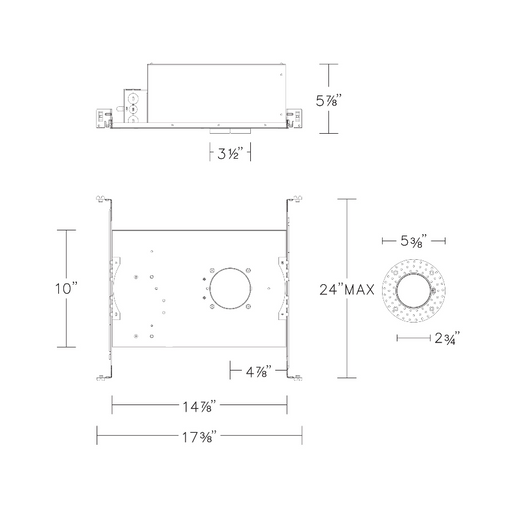 WAC LightingOcularc 3.5 New Construction Housing Round Features Housing only. Exterior trim sold separately Aperture Size: 3.5" Construction: 20 Gauge cold ro...