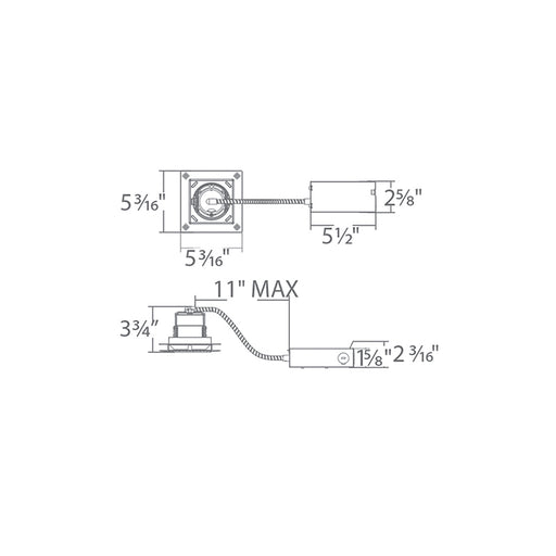 WAC LightingOcularc 3.5 Dim-to-Warm Remodel Housing Trimless Square Features Exterior trim sold separately Aperture Size: 3.5" Construction: 20 gauge cold rol...