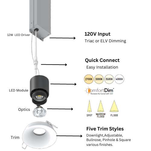 - Color Temperature: 2700K, 3000K, 3500K, 4000K, or Comfort Dim(2900K~1900K)