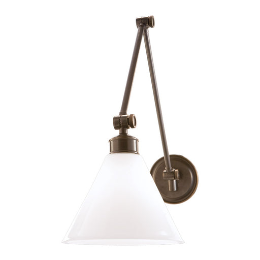 Hudson ValleyAn English barrel shade caps the refined styling of the Claremont wall-mount, swing-arm lamp. Though unembellished, the candlestick and bobeche bul...