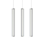 Contemporary 3 light LED linear pendant with four sided illumination.