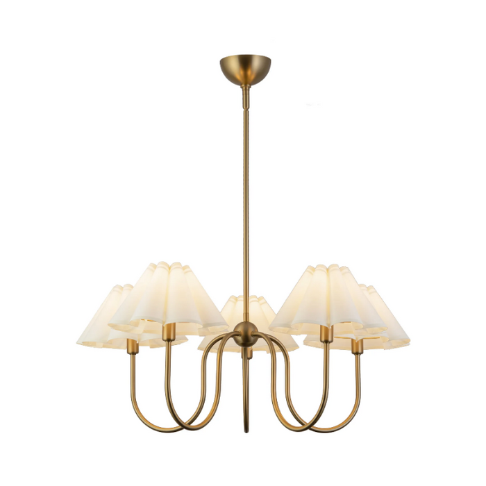 Give your home a magical makeover with the Rosemary chandelier from Kelsey Leigh Design Co. Imagine this: oversized pleated linen shades that make your space feel like a vintage market treasure. It's a timeless piece that adds a touch of elegance and warmth to any room.