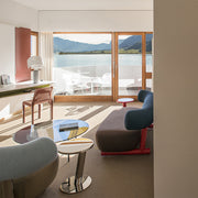 With its bold black and white stripes, Shogun creates a strong graphic presence with its contrast. Its diffuser is crafted of perforated steel, which diffuses a soft light through the tiny holes creating an interesting pattern of light and shadow.