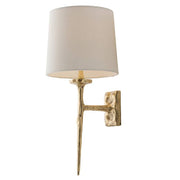 Brass has been cast to mimic molten metal in this romantic wall sconce. The fluid nature of the matte brass is evocative of Salvador Dali's surreal designs. Topped with an off-white linen Uno mounted shade.
