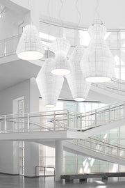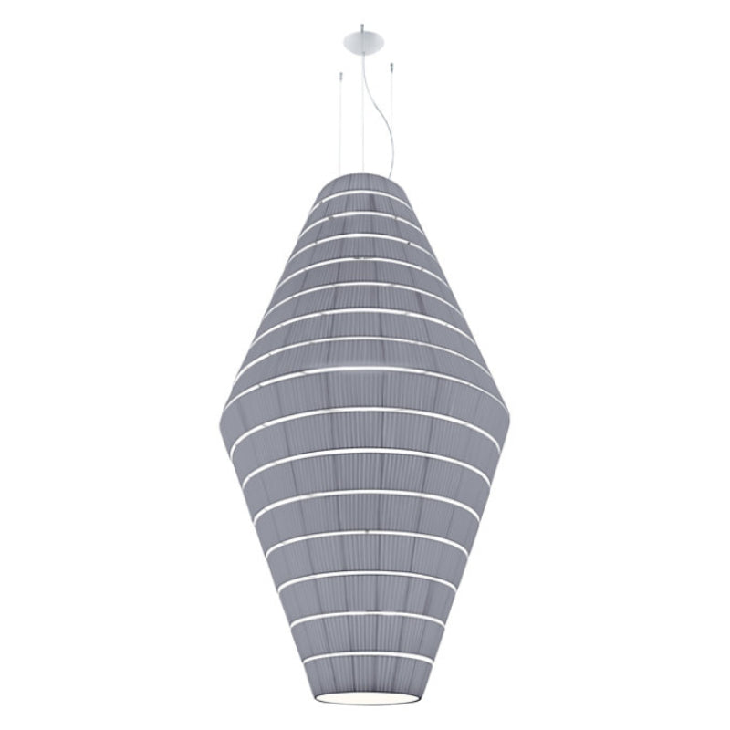 Layers is a collection of suspension lamps with a strong sculptural presence, obtained through combinations of different geometric shapes. Its layered system is modular, which allows you to create different shapes. The distinctive feature of Layers is the breadth of its volumes, but at the same time its lightness, which make this lamp ideal for large spaces. The texture of its fabric and the structure of Layers, as demonstrated by our tests, allow to reduce noise by up to 47%.